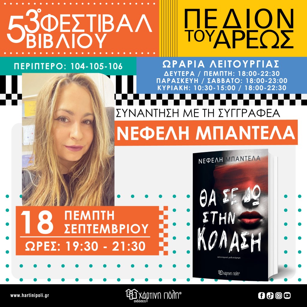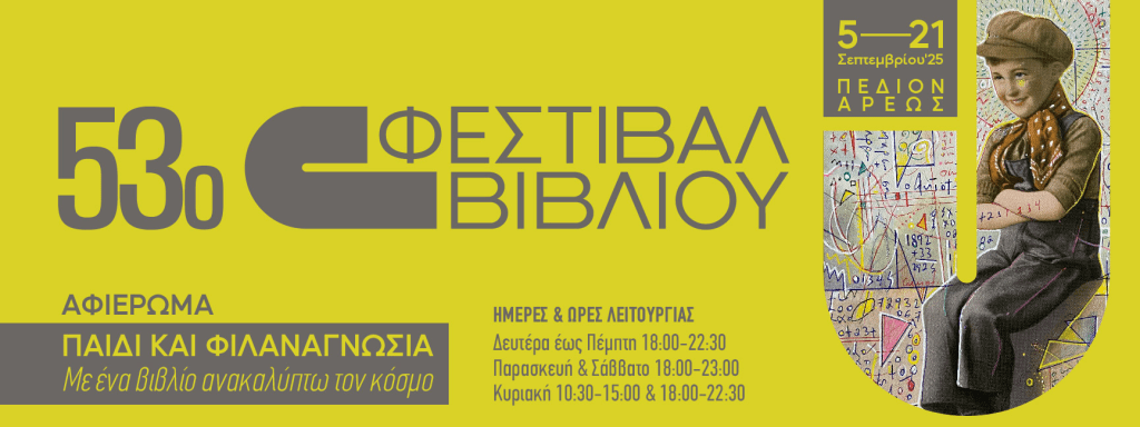 Με μεγάλη χαρά σας ανακοινώνω τη συμμετοχή μου στο 53ο Φεστιβάλ Βιβλίου, που θα πραγματοποιηθεί στο Πεδίον του Άρεως.